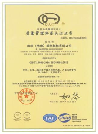質(zhì)量管理體系認(rèn)證證書(shū)