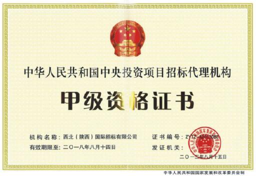 中央投資項(xiàng)目招標(biāo)代理“甲級(jí)”資質(zhì)證書(shū)