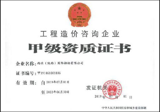 工程造價(jià)咨詢(xún)“甲級(jí)”資質(zhì)證書(shū)