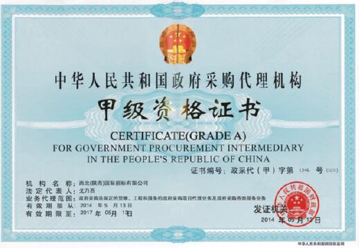 政府采購(gòu)招標(biāo)代理“甲級(jí)”資質(zhì)證書(shū)