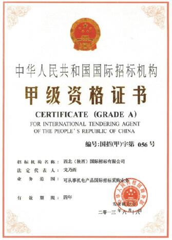 國(guó)際招標(biāo)代理“甲級(jí)”資質(zhì)證書(shū)
