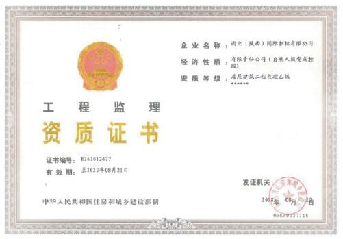 ★陜西省住建廳授予工程監(jiān)理乙級(jí)資質(zhì)