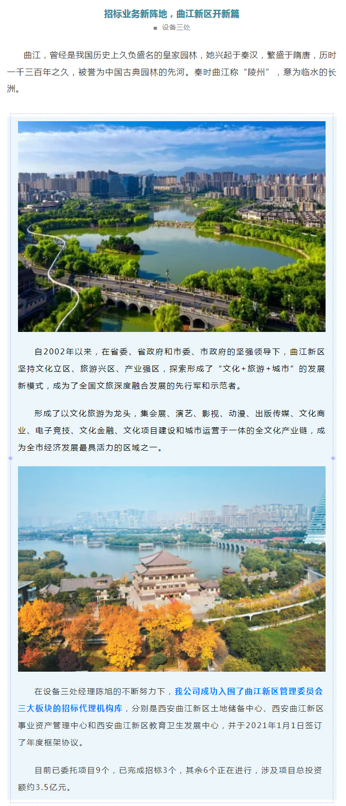 招標(biāo)業(yè)務(wù)新陣地,曲江新區(qū)開新篇