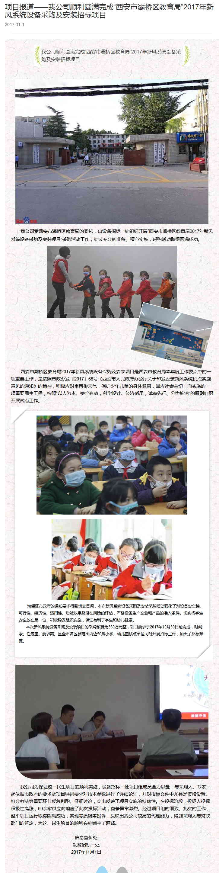 我公司順利圓滿(mǎn)完成“西安市灞橋區(qū)教育局”2017年新風(fēng)系統(tǒng)設(shè)備采購(gòu)及安裝招標(biāo)項(xiàng)目