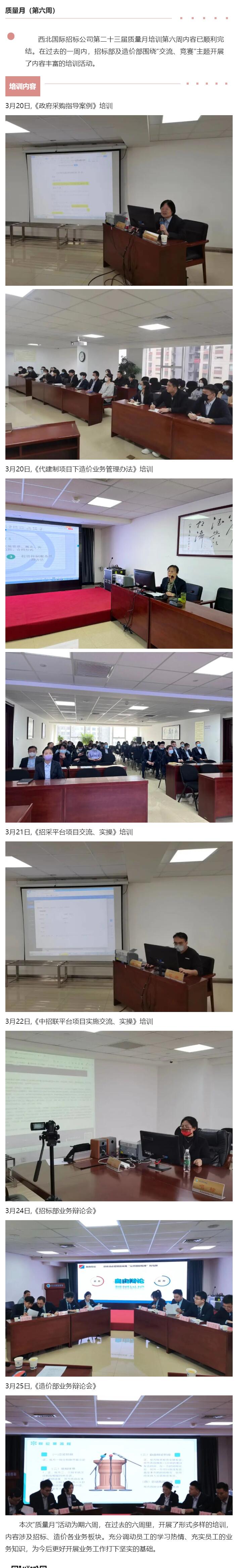 西北國(guó)際招標(biāo)公司第二十三屆“”質(zhì)量月”培訓(xùn)活動(dòng)報(bào)道(第六周)
