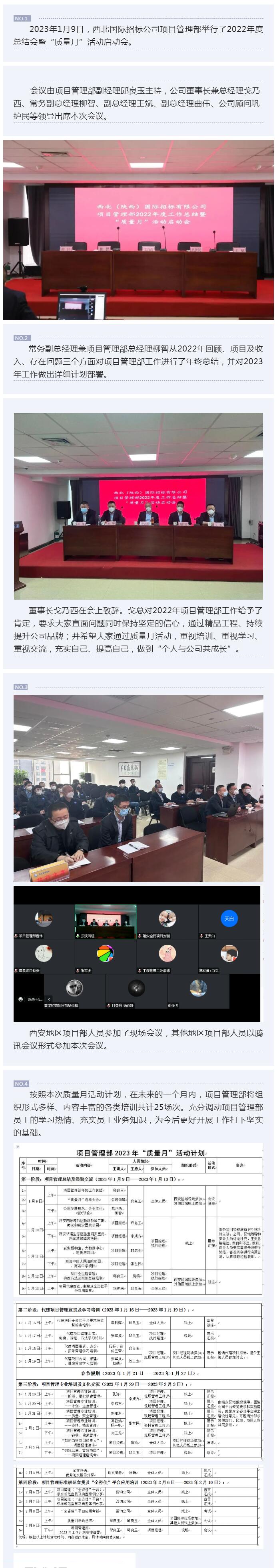 西北國(guó)際招標(biāo)公司項(xiàng)目管理部舉行2022年度總結(jié)會(huì)暨“質(zhì)量月”活動(dòng)啟動(dòng)會(huì)