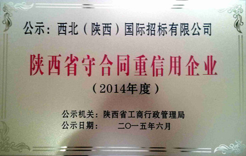 祝賀我公司榮獲2014年度陜西省“守合同重信用”企業(yè)。根據(jù)國(guó)家工商總局和陜西省工商行政管理局通知文件要求,公司申報(bào)并通過(guò)審核,現(xiàn)已在陜西日?qǐng)?bào)和陜西省工商行政管理局網(wǎng)站向社會(huì)公示。