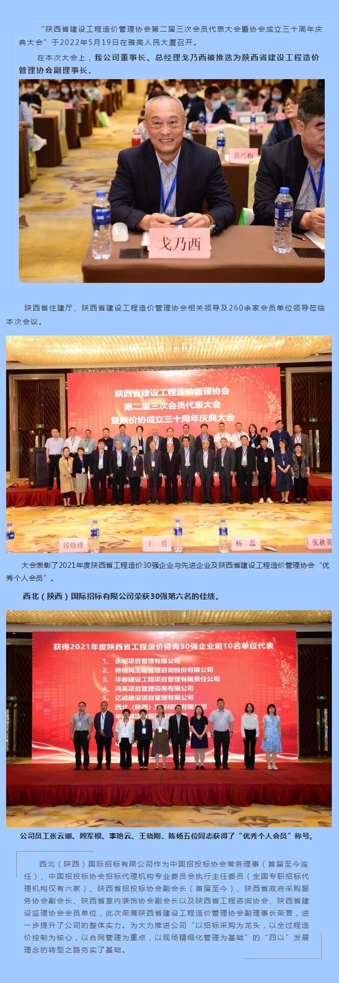 董事長(zhǎng)、總經(jīng)理戈乃西被推選為陜西省建設(shè)工程造價(jià)管理協(xié)會(huì)副理事長(zhǎng)