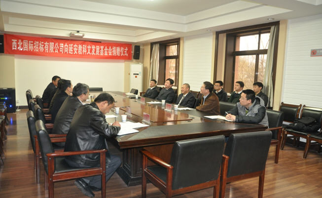 張金鎖校長介紹了延安大學相關(guān)歷史及現(xiàn)狀,并對西北國際招標公司對延安科教文發(fā)展給予的支持表示衷心的感謝。戈總表示,為促進延安教科文發(fā)展基金會各項事業(yè)的順利實施,以及從戰(zhàn)略高度和長遠發(fā)展需要出發(fā),我們希望通過這次合作建立多層次、高水平的校企合作關(guān)系,達到優(yōu)勢互補、共同發(fā)展的目的!