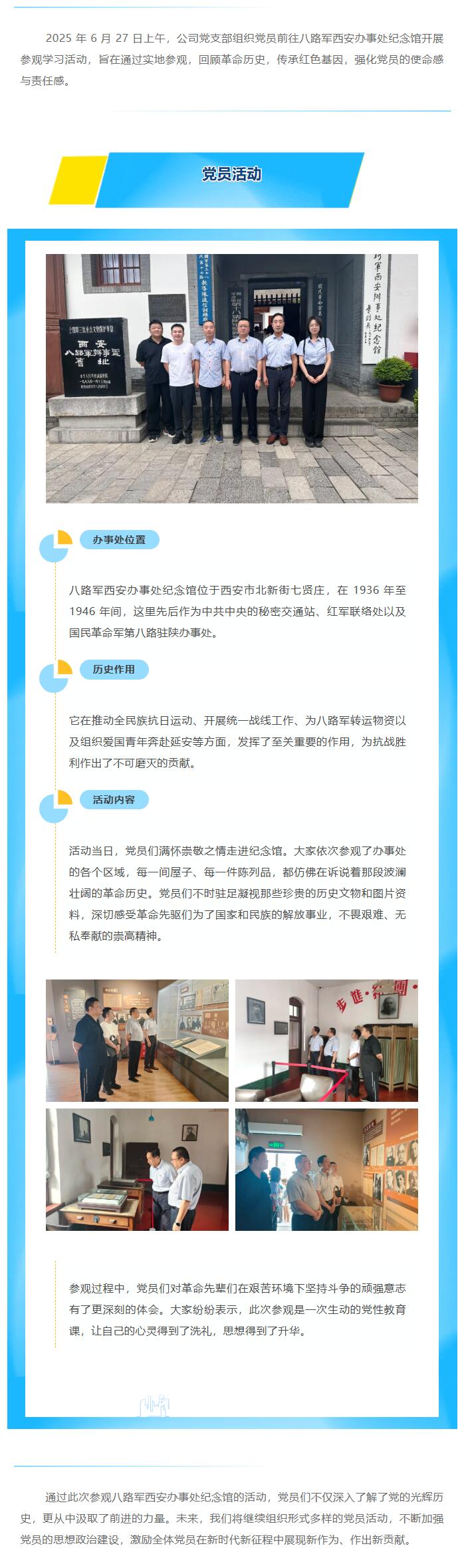 銘記歷史,傳承精神 —— 公司黨支部組織黨員參觀八路軍西安辦事處紀(jì)念館