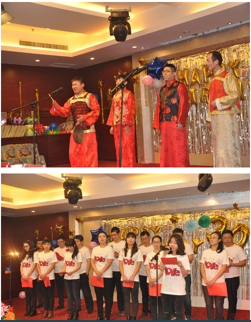 主持人侯潤澤 、常樂宣布演出開始,辦公室張琦以一曲慷慨激昂的男聲獨(dú)唱《中國人》首先登場。緊接著設(shè)備部的小合唱《我相信》和《明天會更好》點(diǎn)燃了全場觀眾的情緒,大家被團(tuán)結(jié)和積極向上的氛圍感染。造價(jià)部胡建輝、謝新、李珂、張翔宇的三句半《說造價(jià)》用詼諧而生動的陜西方言道出了造價(jià)工作的艱辛與樂趣;楊大衛(wèi)的小號表演優(yōu)美動聽;詩朗誦《牽動造價(jià)舞動人生》則以高昂的情懷抒發(fā)了造價(jià)人對造價(jià)工作的熱愛。財(cái)務(wù)室常樂帶來的古典舞蹈《驚鴻舞》將觀眾帶入到一個(gè)優(yōu)美而婉約的意境中;劉卿和李偉合作的小提琴吉他伴唱《當(dāng)你老了》深情動人。工程部的小品《小璐超級訪問》和楊東峰的魔術(shù)《分不清左右》充分展現(xiàn)了年輕人的才華,包袱疊起,讓人捧腹不止。抽獎與游戲環(huán)節(jié)更是讓觀眾熱情高漲,八十位同志有幸在此環(huán)節(jié)中獲得一、二、三等獎。晚會最后以一曲《相親相愛》結(jié)束。