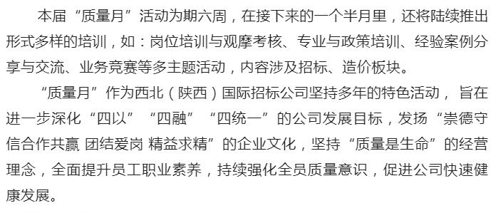 西北(陜西)國際招標有限公司第二十三屆“質(zhì)量月”活動正式開啟