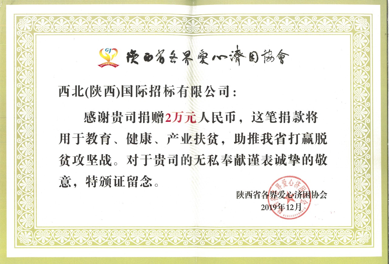 我公司向“陜西省各界愛心濟困協(xié)會”捐款2萬元