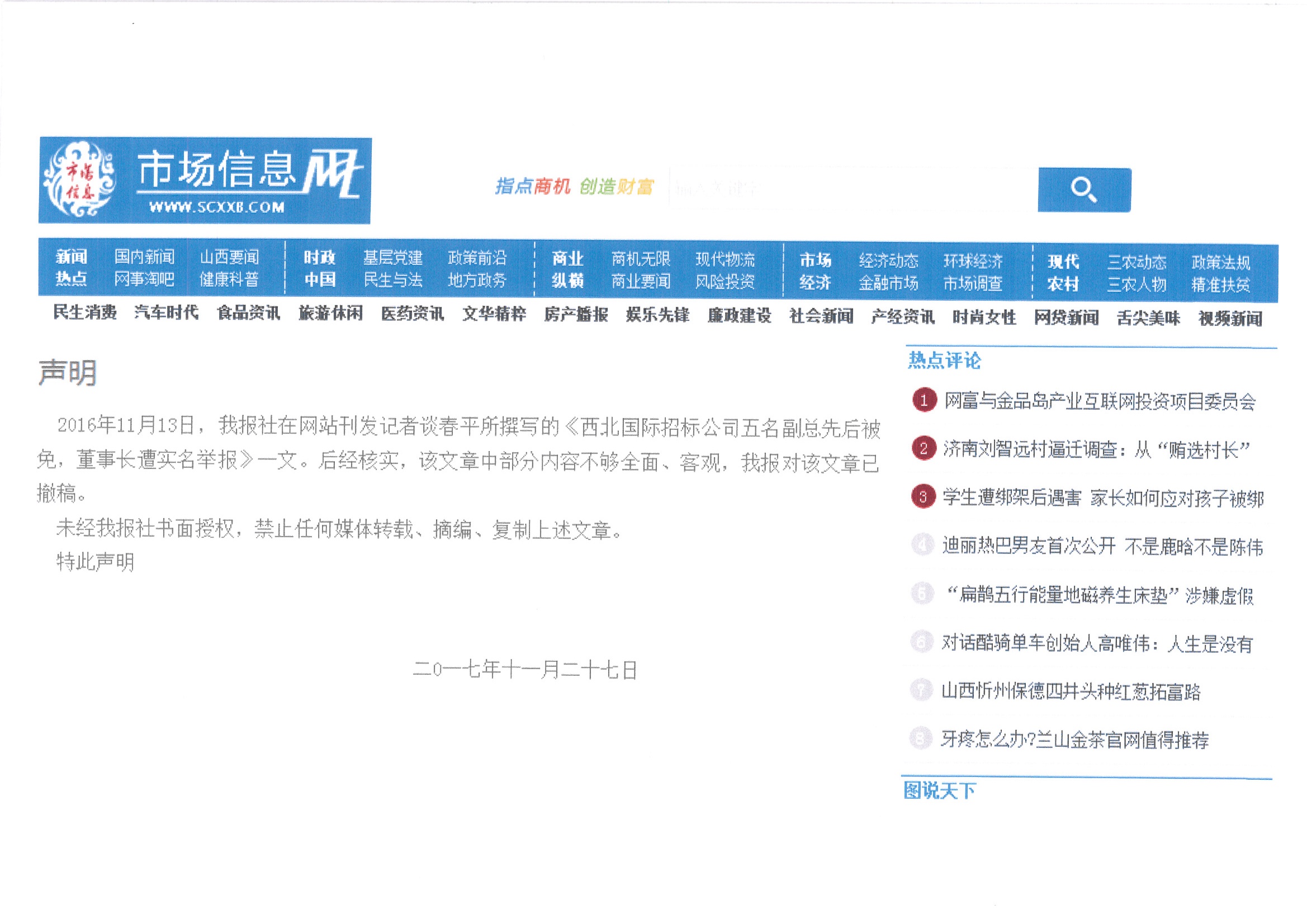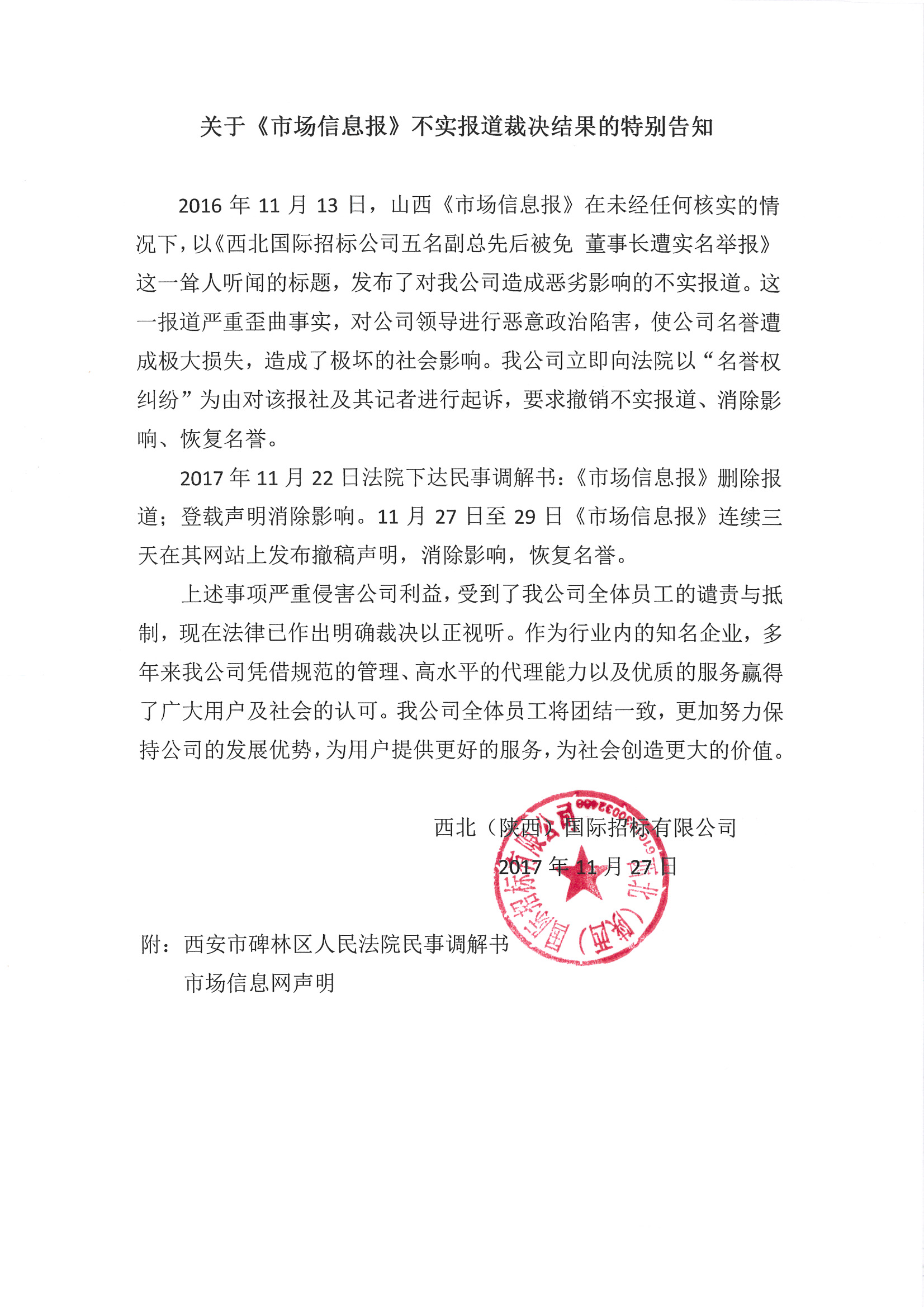 關(guān)于《市場信息報》不實報道裁決結(jié)果的特別告知