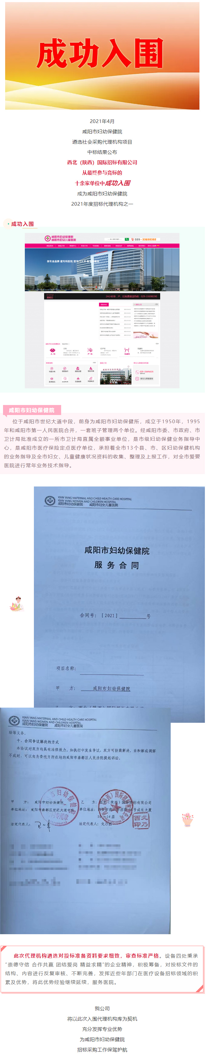 我公司成功入圍咸陽市婦幼保健院代理機構(gòu)庫