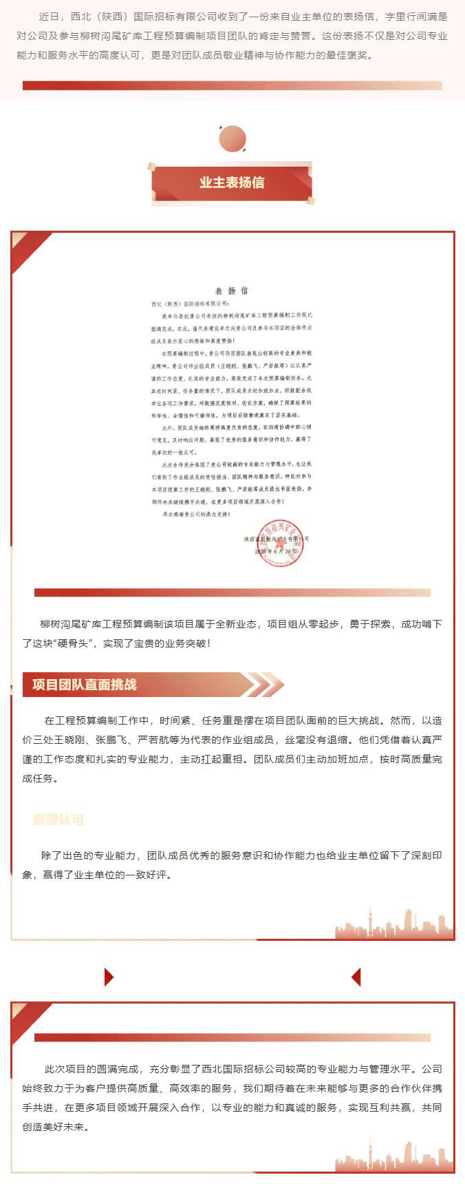 專(zhuān)業(yè)鑄就口碑,協(xié)作共贏未來(lái)--西北(陜西)國(guó)際招標(biāo)有限公司獲建設(shè)單位高度贊譽(yù)