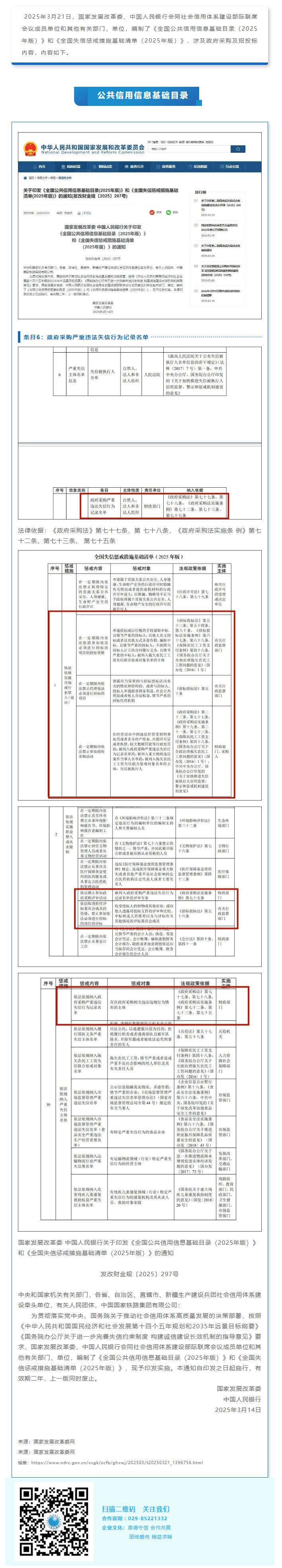 《全國(guó)公共信用信息基礎(chǔ)目錄(2025年版)》和《全國(guó)失信懲戒措施基礎(chǔ)清單(2025年版)》發(fā)布!涉及政府采購(gòu)!