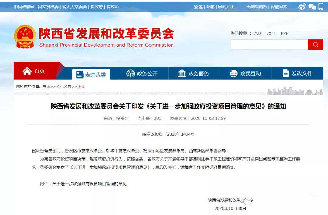 陜西省發(fā)展和改革委員會(huì)印發(fā)《關(guān)于進(jìn)一步加強(qiáng)政府投資項(xiàng)目管理的意見(jiàn)》通知