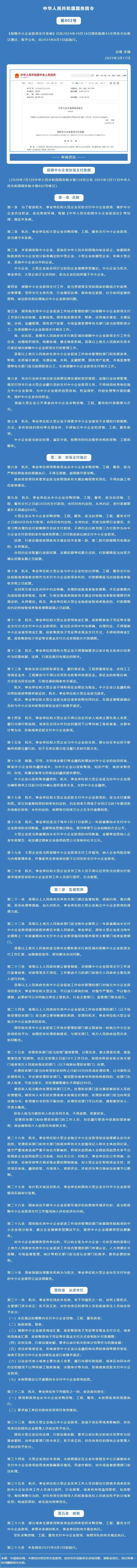 修訂后的《保障中小企業(yè)款項(xiàng)支付條例》發(fā)布!國(guó)務(wù)院令第802號(hào)