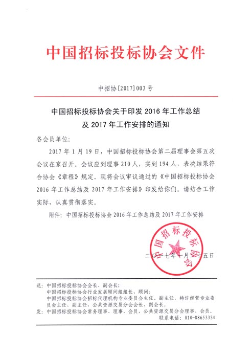 中國招標投標協(xié)會2016年工作總結(jié)及2017年工作安排
